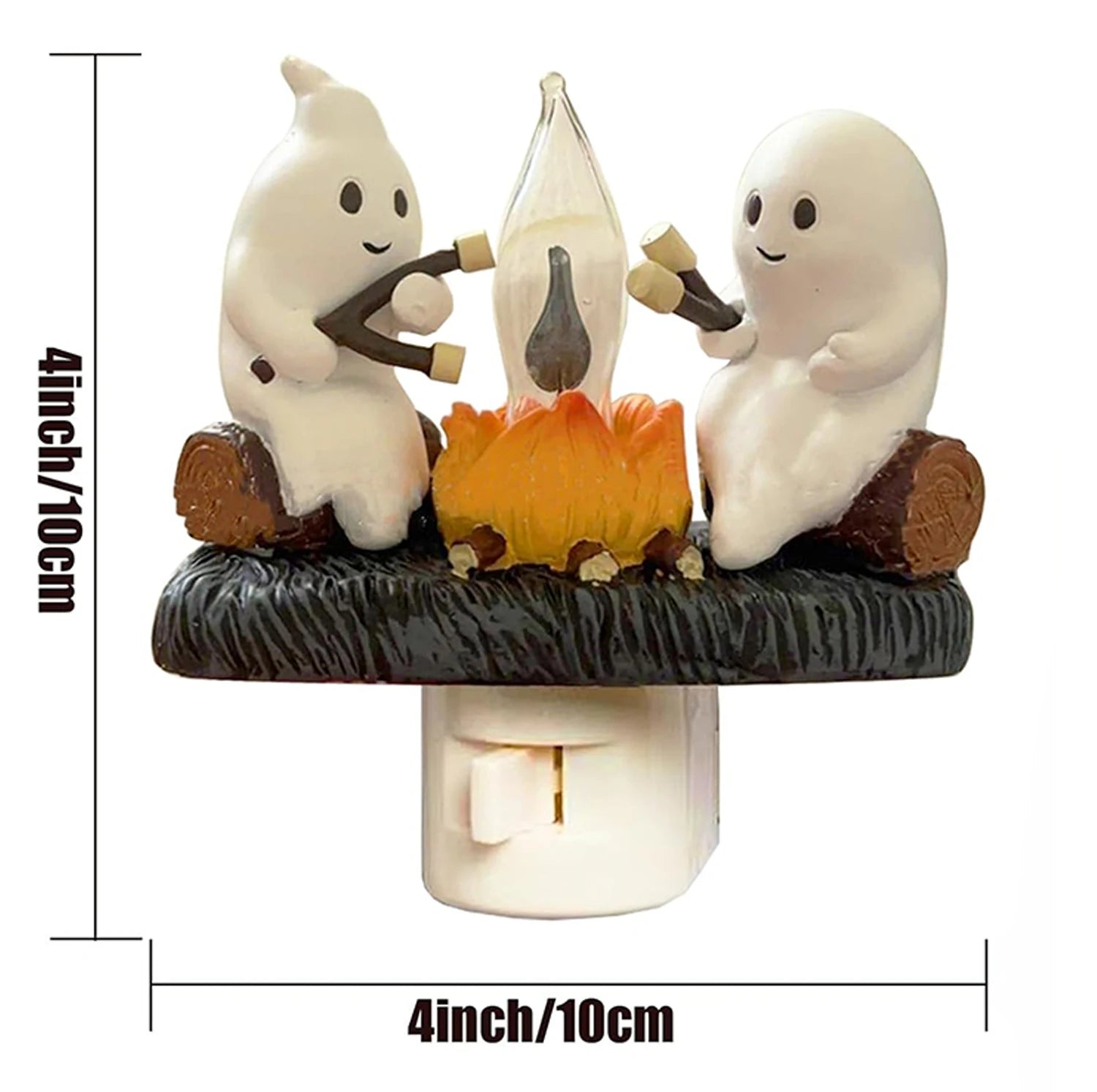 Ghost Campfire Flickering Night Light, Flicker Flame Halloween Nightlight, 3D LED Small Electric Faux Campfire Night Light